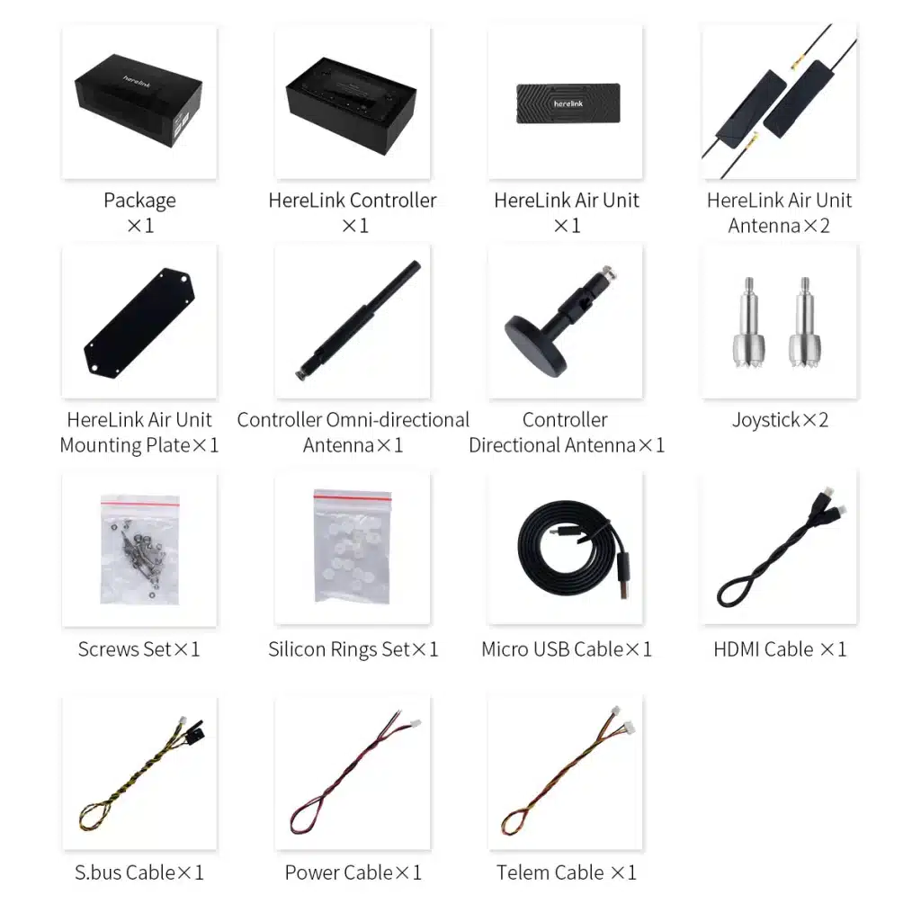 Herelink is an integrated remote controller, ground station and wireless digital transmission system designed to be used with the Cube Autopilot, Ardupilot or PX4. Herelink allows RC control, HD video and telemetry data to be transmitted upto 20km between the ground station and air unit, the Herelink remote controller features custom Solex TX and QGC applications and both air unit and ground station feature an integrated 8 core SOC for custom application development.